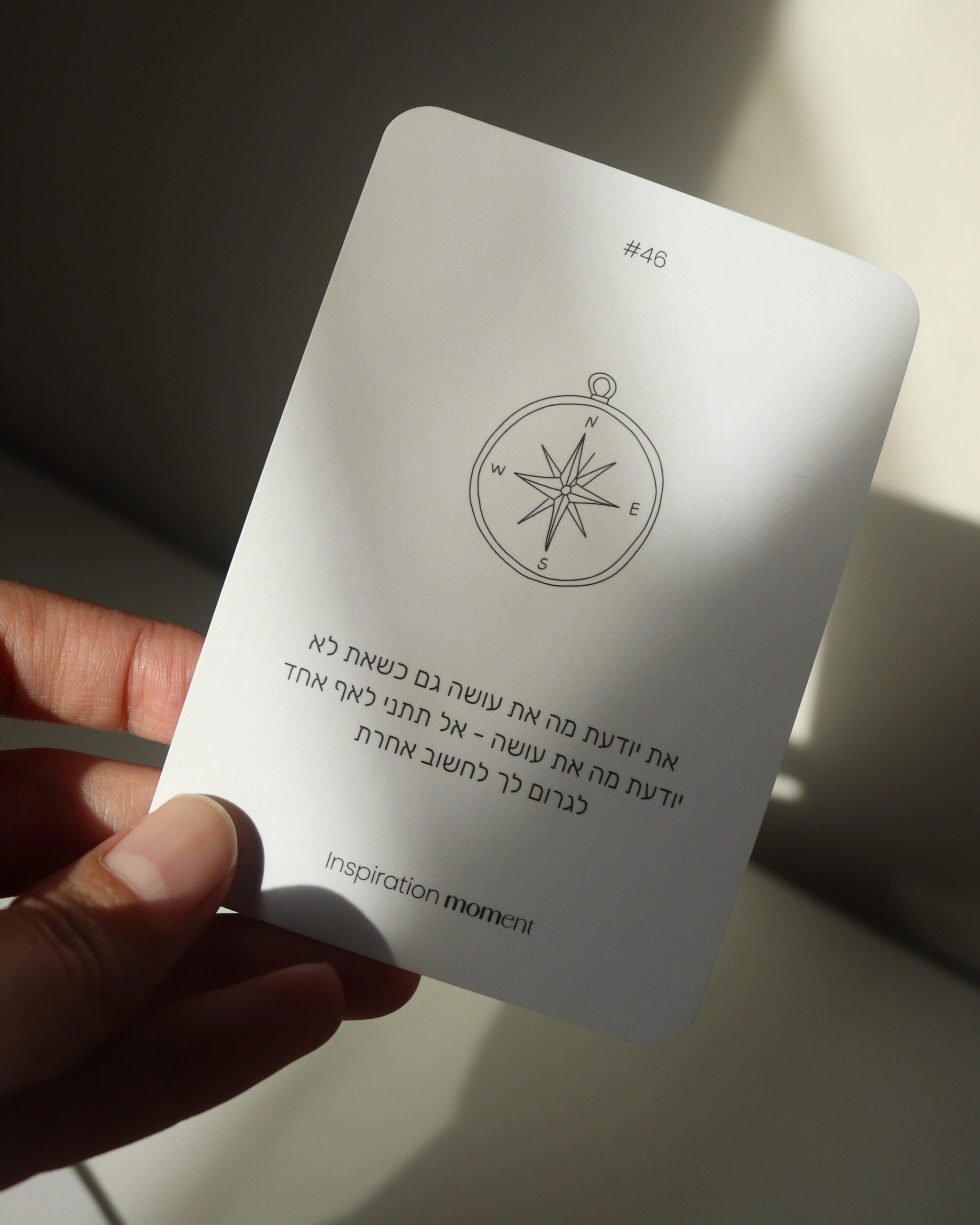 כשהיום שלך אינטנסיבי ואין לך שנייה פנויה, קשה להתחבר לתחושת "האני" שאבדה. קלפי ההשראה שלנו נוצרו כדי להיות פתרון אולטרה-מהיר – מעין "בוסטר" רגשי.